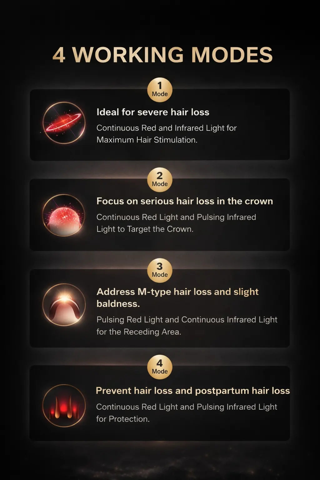 Quiet, lightweight, and clinically inspired, Tricholux™ Pro is designed for daily use as part of a serious hair recovery routine — not temporary fixes, but consistent progress you can feel and see.